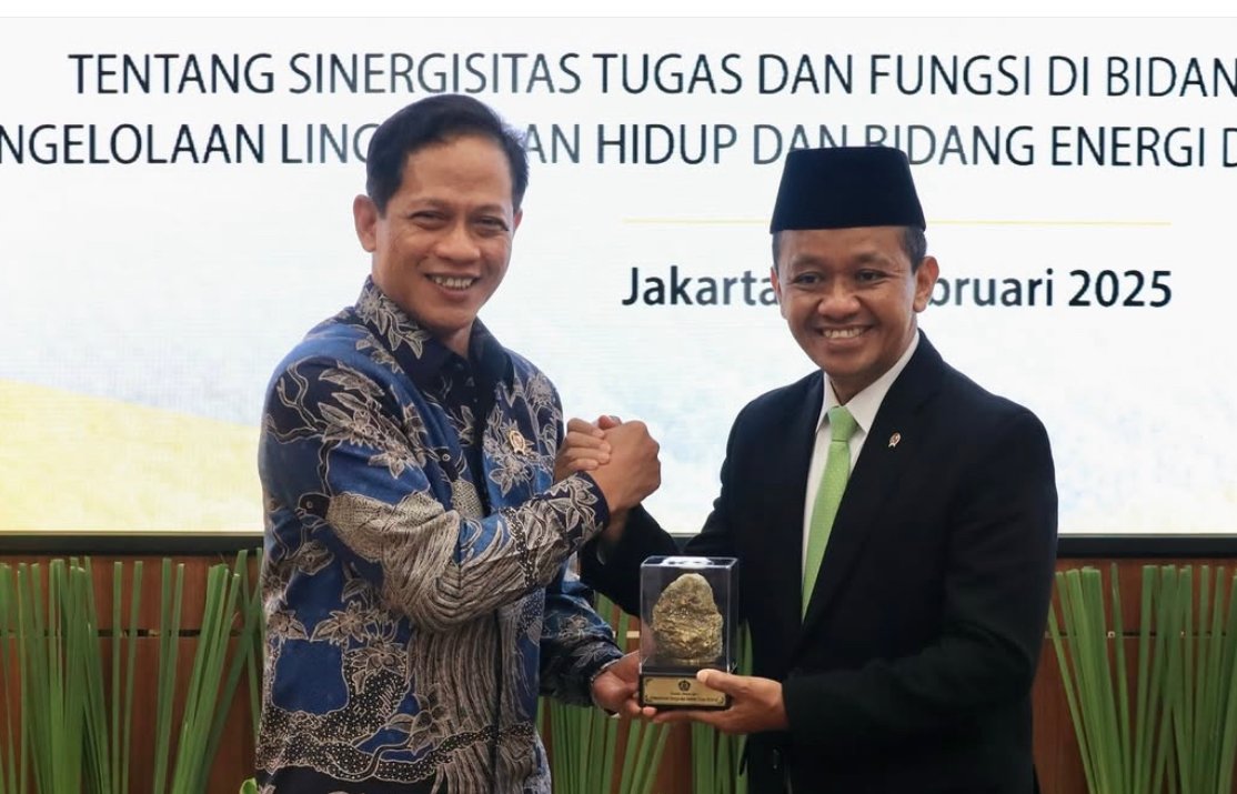 Nota Kesepahaman ini ditandatangani oleh Menteri ESDM Bahlil Lahadalia dan Menteri Lingkungan Hidup Hanif Faisol Nurofiq di Kantor Kementerian ESDM, Jakarta, Rabu (26/2). Salah satu poin utama kerja sama ini adalah penataan perizinan di bidang lingkungan hidup dan energi demi mewujudkan ketahanan energi, sesuai dengan Asta Cita Presiden Prabowo Subianto.
