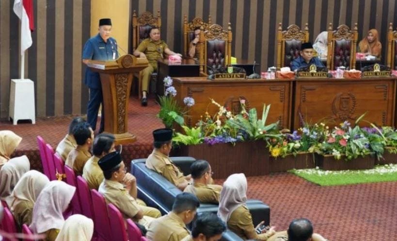 Tanah Bumbu – Bupati Kabupaten Tanah Bumbu, Zairullah Azhar, melalui Asisten II Bidang Perekonomian dan Pembangunan, Eriyanto Rais, memberikan tanggapan eksekutif terhadap Pemandangan Umum Fraksi-Fraksi Dewan Perwakilan Rakyat Daerah (DPRD) Tanah Bumbu terkait Rancangan Peraturan Daerah (Raperda). Penyampaian tersebut berlangsung di Gedung Rapat Paripurna DPRD Tanah Bumbu, Selasa (15/10/2024).