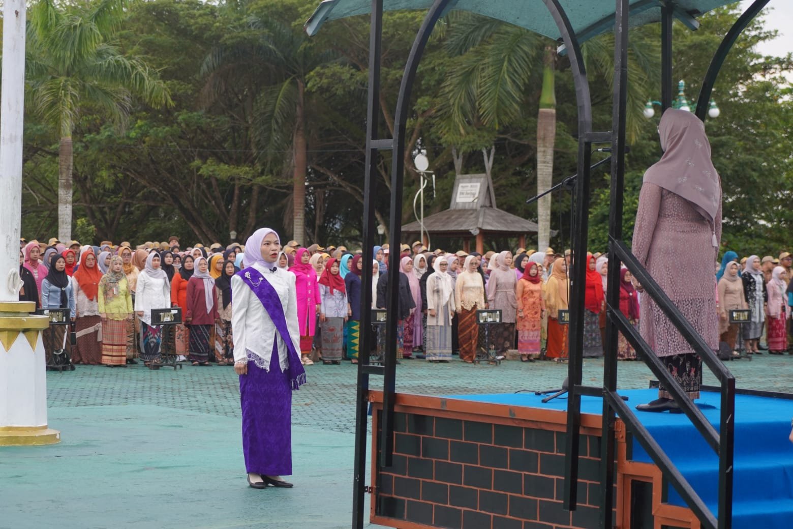 Upacara diikuti oleh para Aparatur Sipil Negara (ASN) dengan suasana penuh kekhidmatan. ASN perempuan tampil anggun dalam balutan kebaya nasional, sementara ASN laki-laki mengenakan Pakaian Dinas Harian (PDH). Paduan ini tak hanya menghadirkan estetika budaya, namun juga memperkuat pesan bahwa perempuan memiliki tempat sejajar dalam setiap ruang pengabdian.