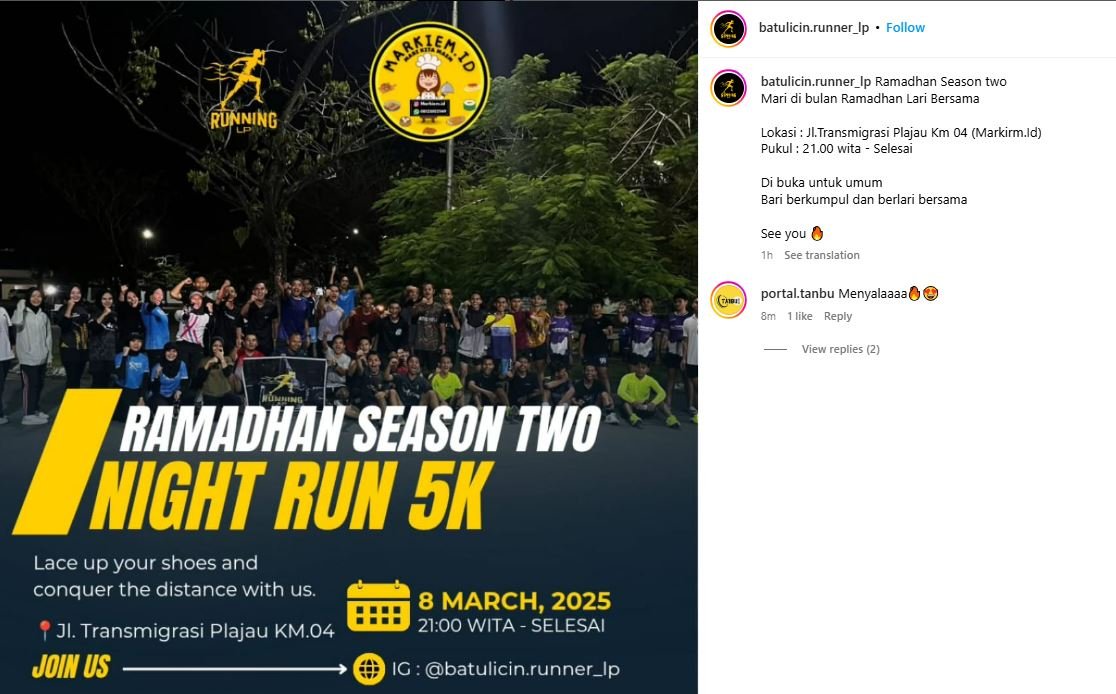 Untuk informasi lebih lanjut, masyarakat dapat mengunjungi akun Instagram @batulicin.runner_lp