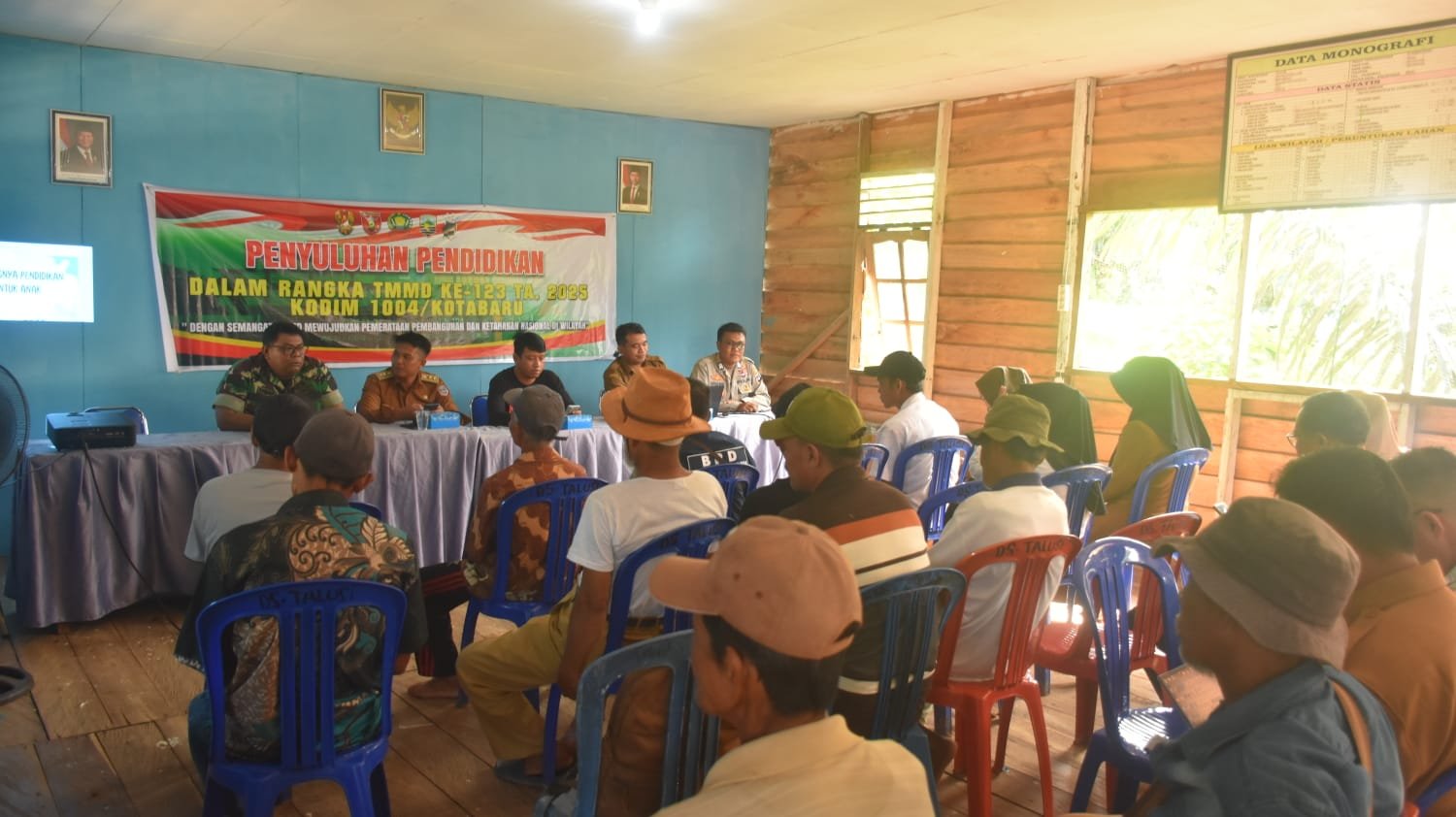 Suarkalsel, Kotabaru – Satgas TMMD Ke-123 menggelar sosialisasi pendidikan di Desa Talusi, Kecamatan Pamukan Selatan, Kabupaten Kotabaru, sebagai upaya meningkatkan kesadaran dan pengetahuan masyarakat tentang pentingnya pendidikan. Kegiatan ini dihadiri oleh warga desa, para guru, serta anggota Satgas TMMD Ke-123.